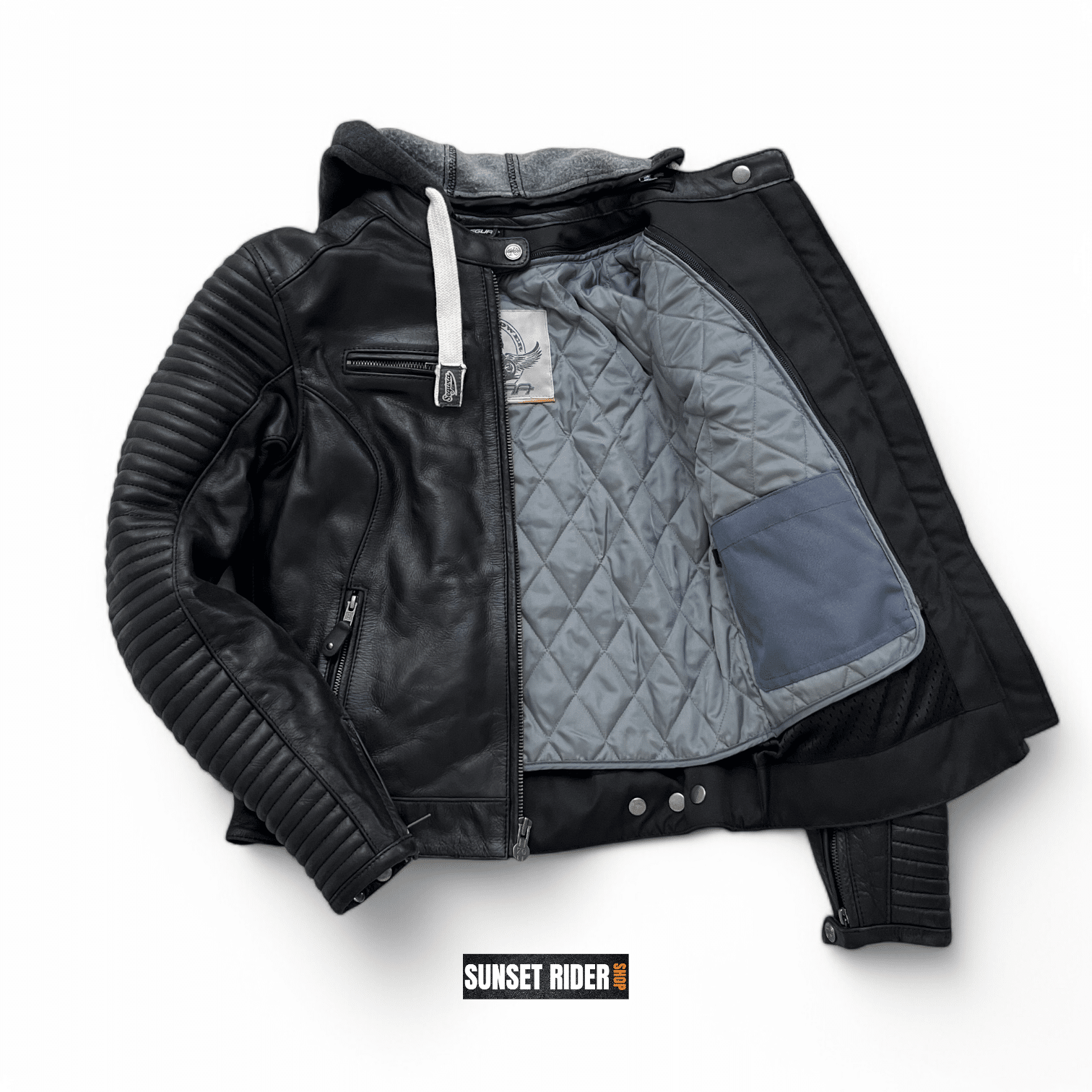 - Renforts en cuir ouaté aux épaules et manches