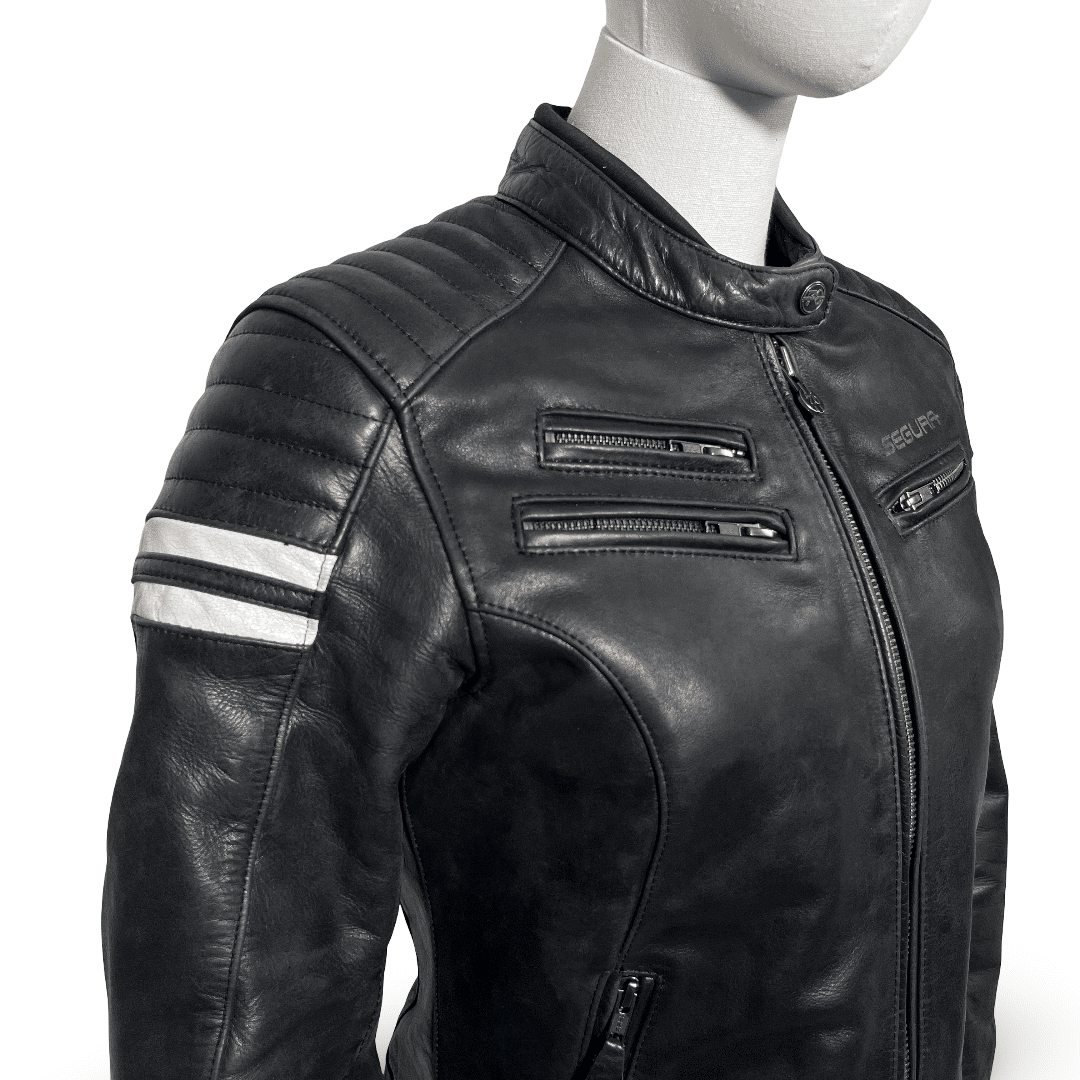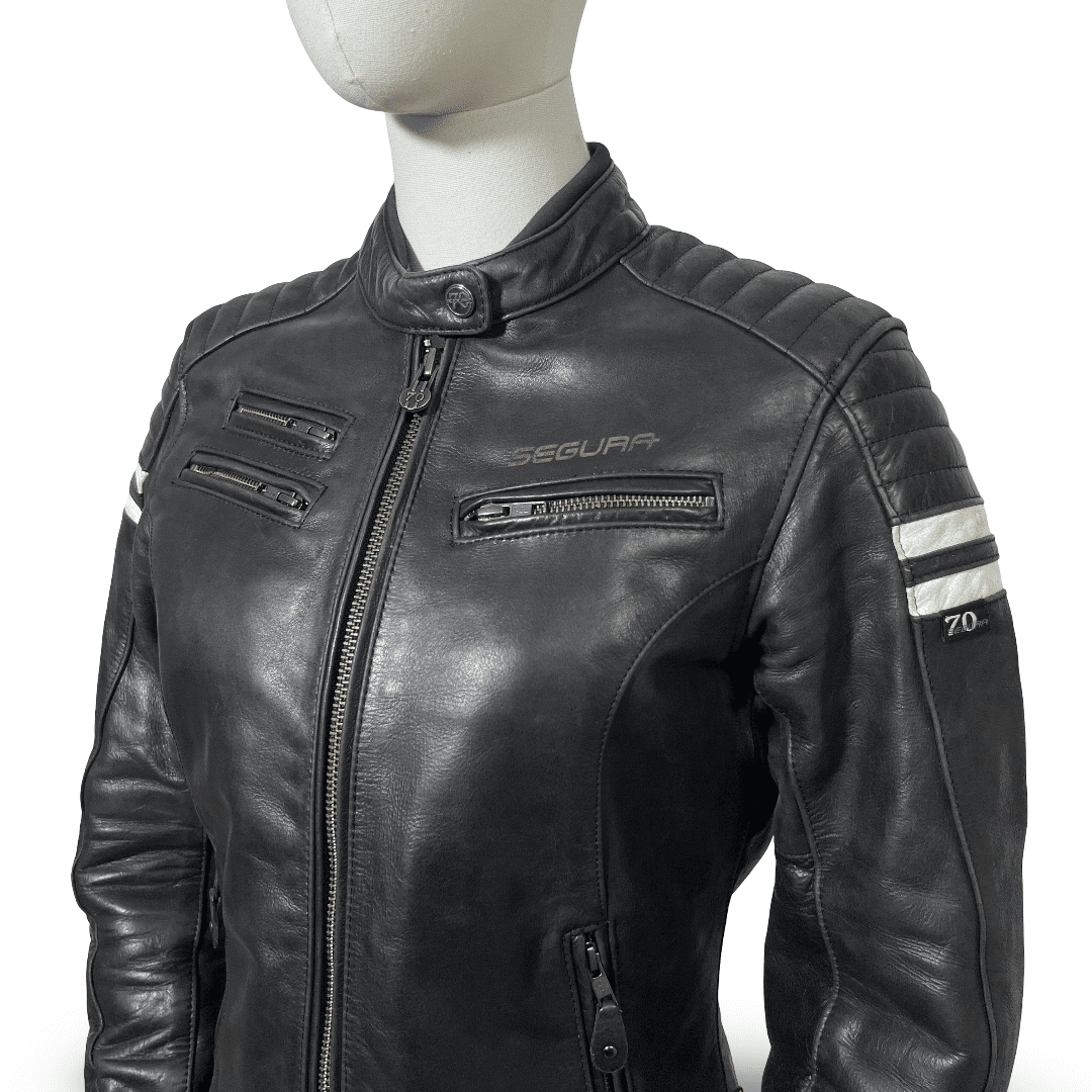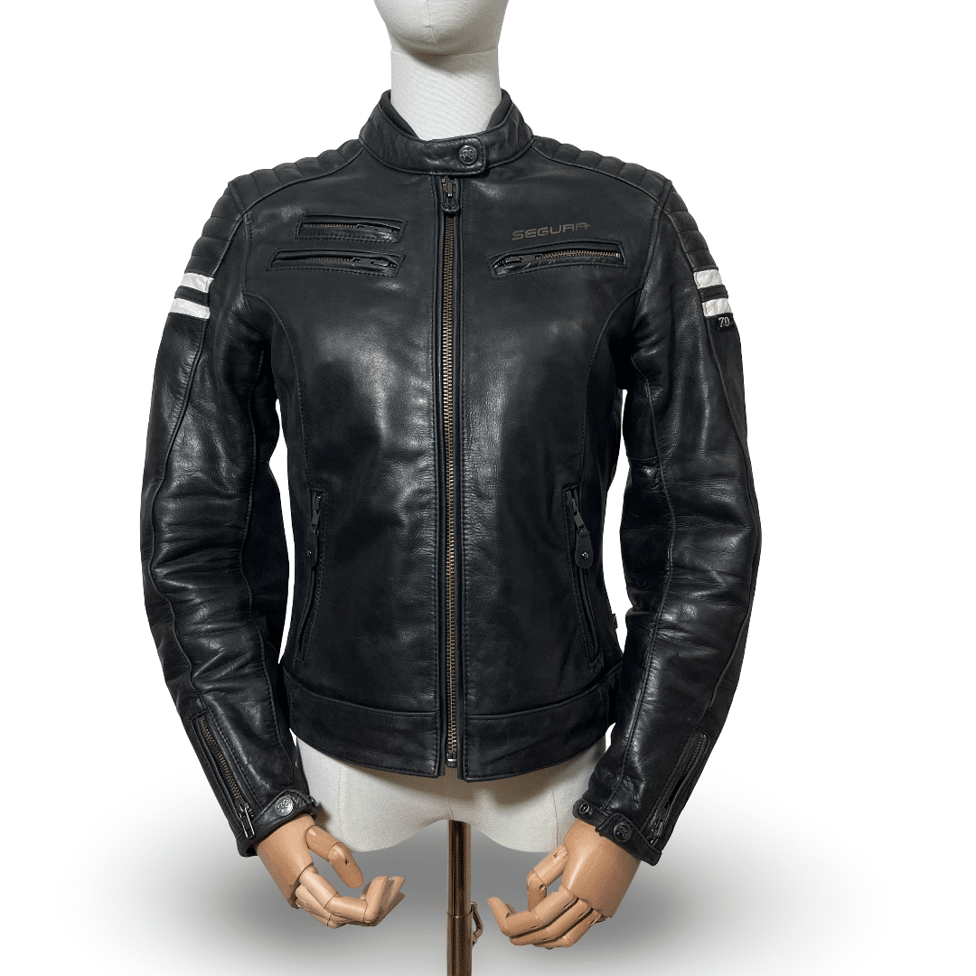 Découvrez le blouson moto cuir femme reconditionné SEGURA FUNKY AAA en taille S/T1. Avec son cuir de buffle « Buffalo » et son design urbain, ce blouson de mi-saison allie style et sécurité. Il est idéal pour celles qui recherchent un blouson moto cuir seconde main femme de qualité. Son style indémodable vous garantit un look élégant tout en assurant votre confort et votre protection sur la route.