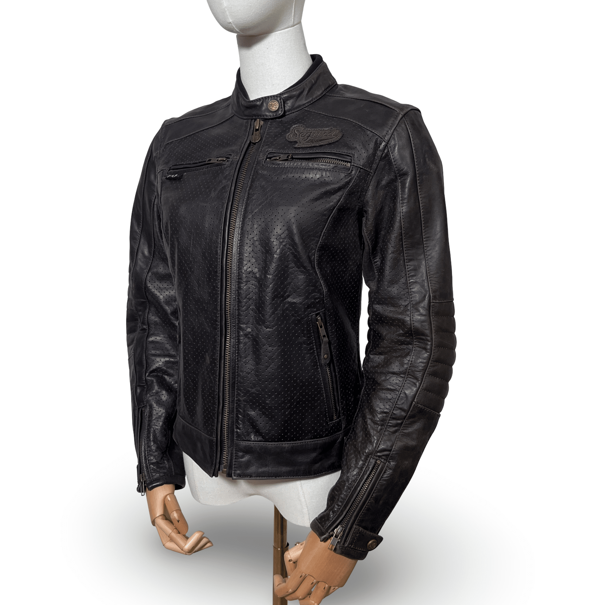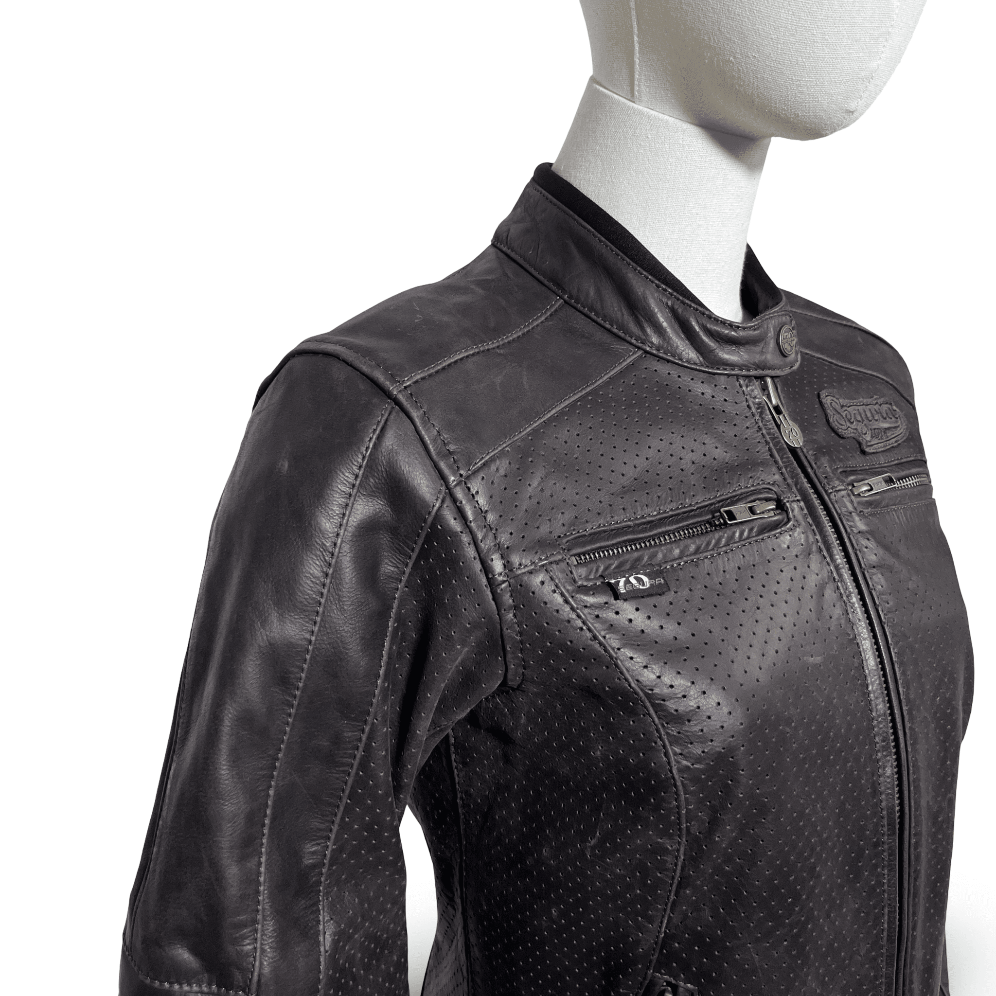 Découvrez l’élégance et la sécurité avec notre blouson moto cuir seconde main femme, le SEGURA IRON en taille XS/T0. Idéal pour celles qui recherchent un blouson alliant style et protection, ce modèle reconditionné est prêt à vous accompagner dans vos aventures sur deux roues. Confectionné en cuir Buffalo micro-perforé, il assure une aération optimale tout en offrant une robustesse sans compromis. Les protections de coudes réglables et homologuées CE ainsi que les protections épaules vous garantissent une sécurité maximale lors de vos trajets.