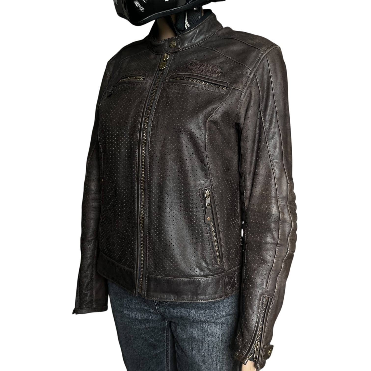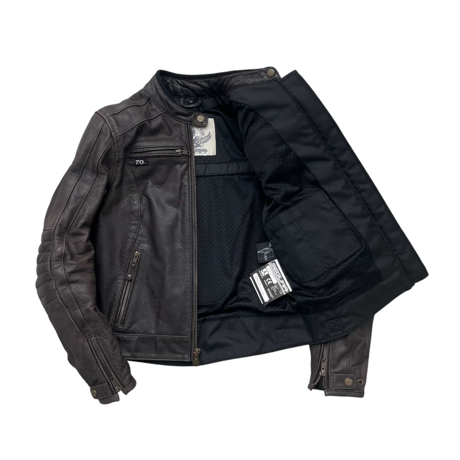 Découvrez notre blouson moto cuir seconde main femme, la SEGURA LADY IRON S/T1. Ce produit, en très bon état, est l’allié idéal pour toutes vos sorties à moto. Ce blouson pour femme est conçu en cuir Buffalo, offrant robustesse et élégance. Il intègre des panneaux de cuir micro perforé à l’avant, sur l’intérieur des bras et les flancs, garantissant une excellente circulation de l’air, même lors des longues balades estivales.