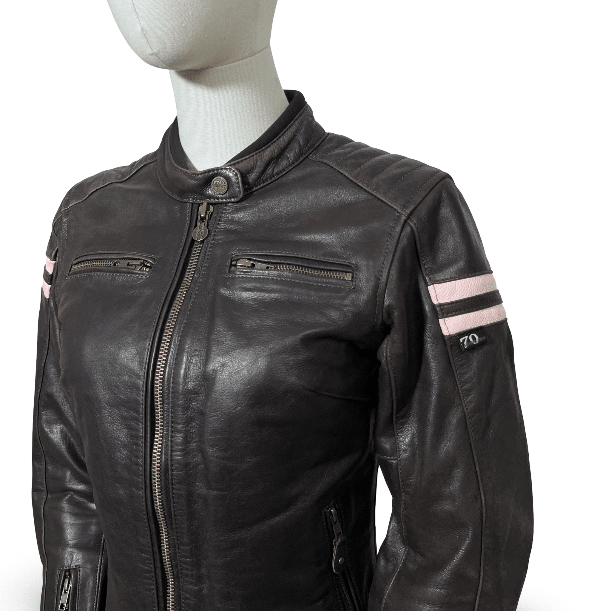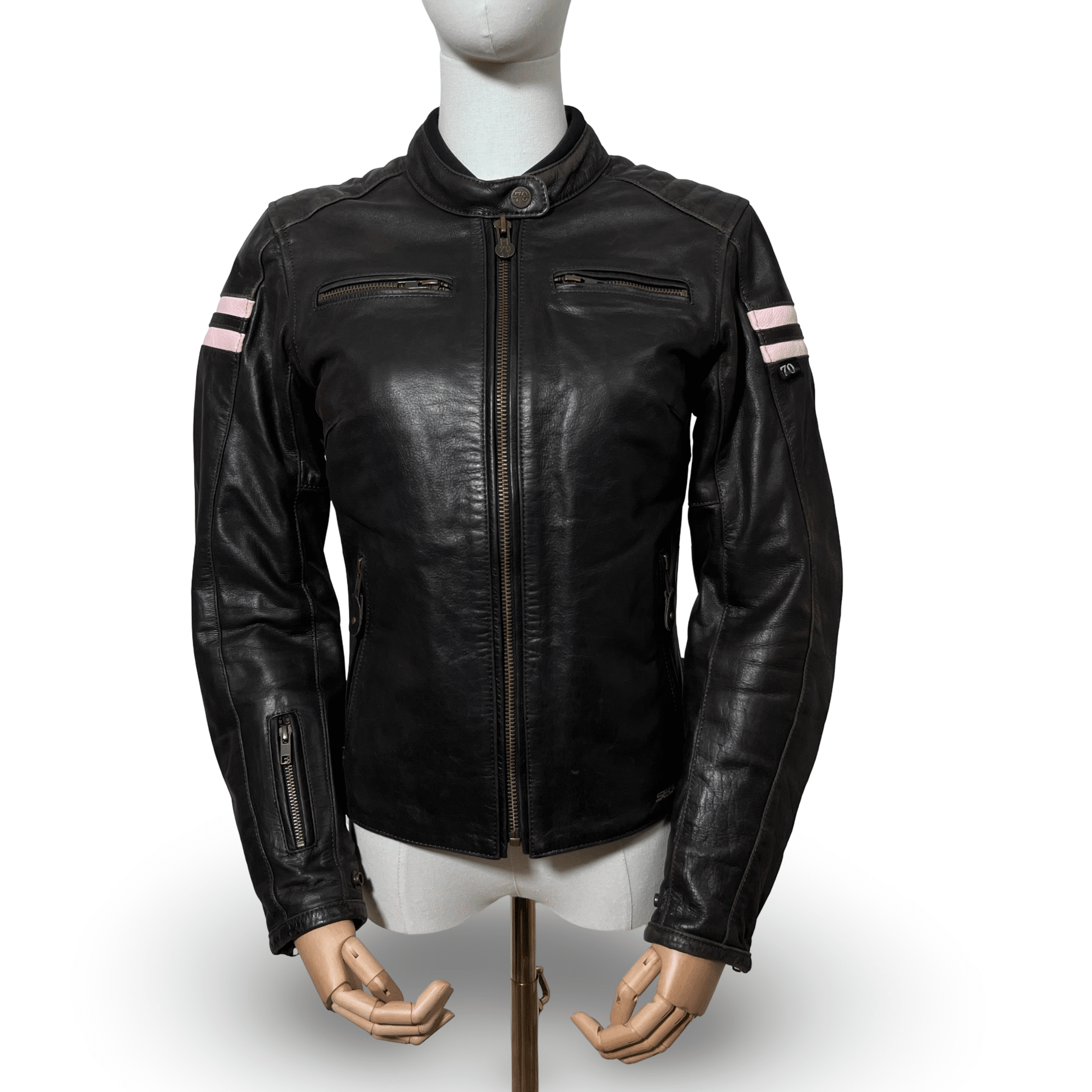 Offrez-vous le blouson moto cuir marron/rose de seconde main femme parfait avec le SEGURA LADY RETRO en taille XS/T0. Conçu pour les motardes recherchant style et sécurité, ce blouson est en très bon état, assurant une longévité accrue et une protection optimale. Sa conception en cuir au look rétro vous garantit un style intemporel tout en vous offrant les protections conformes aux normes européennes.