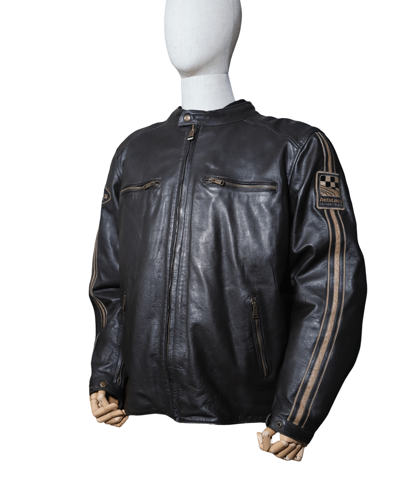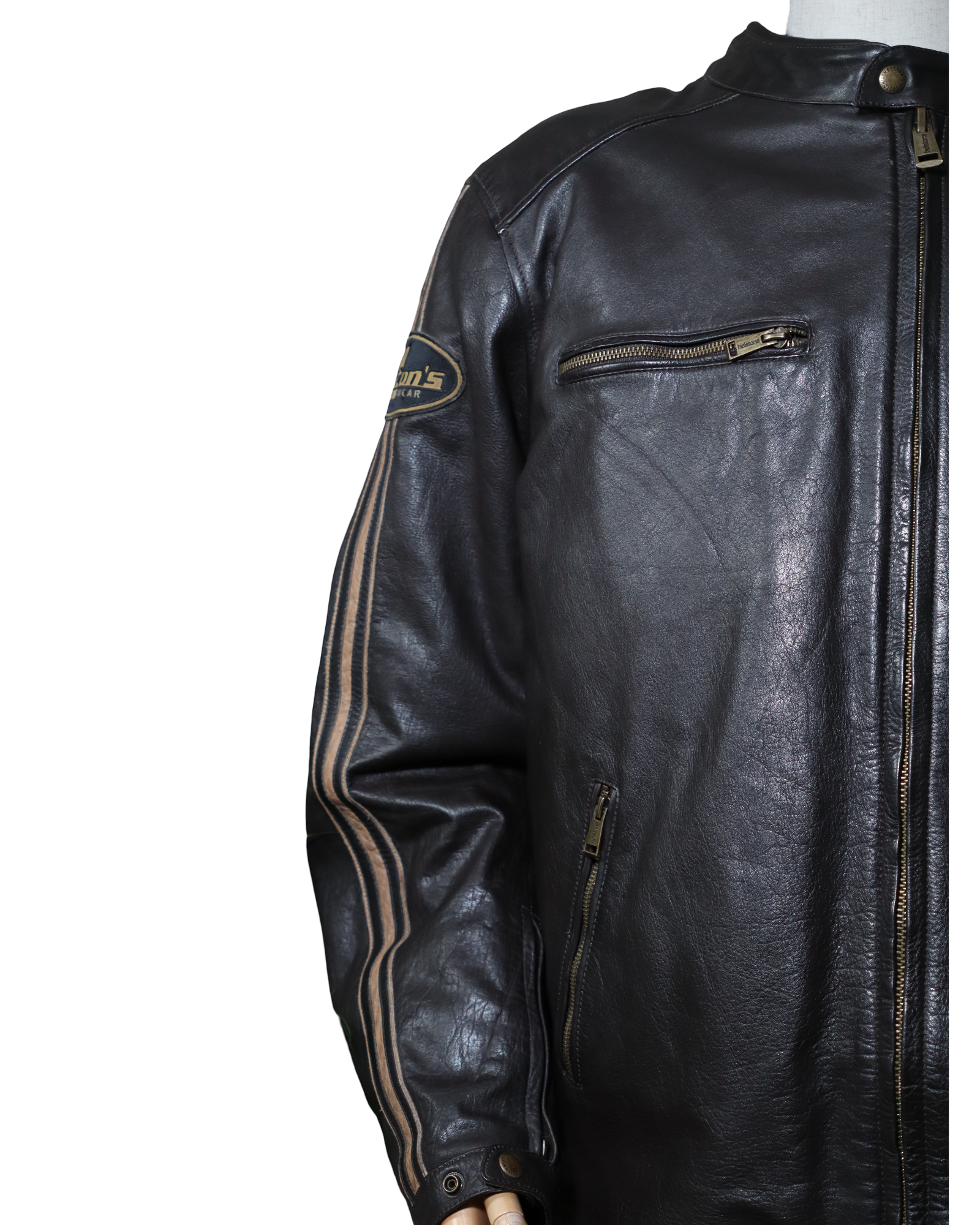 Le HELSTONS ACE est conçu pour votre sécurité optimale. Il est doté de protections homologuées CE aux coudes, épaules et dorsale, garantissant une protection maximale. Ce blouson moto homologué CE est également équipé d’un gilet amovible comprenant une poche portefeuille et une pour le téléphone, ajoutant ainsi praticité et fonction. Pour un confort sur mesure, les pattes de serrage au bas du blouson assurent un ajustement parfait, tandis que sa membrane imperméable vous protège efficacement contre la pluie. Laissez-vous séduire par ce blouson moto cuir reconditionné qui allie sécurité, confort et style.
