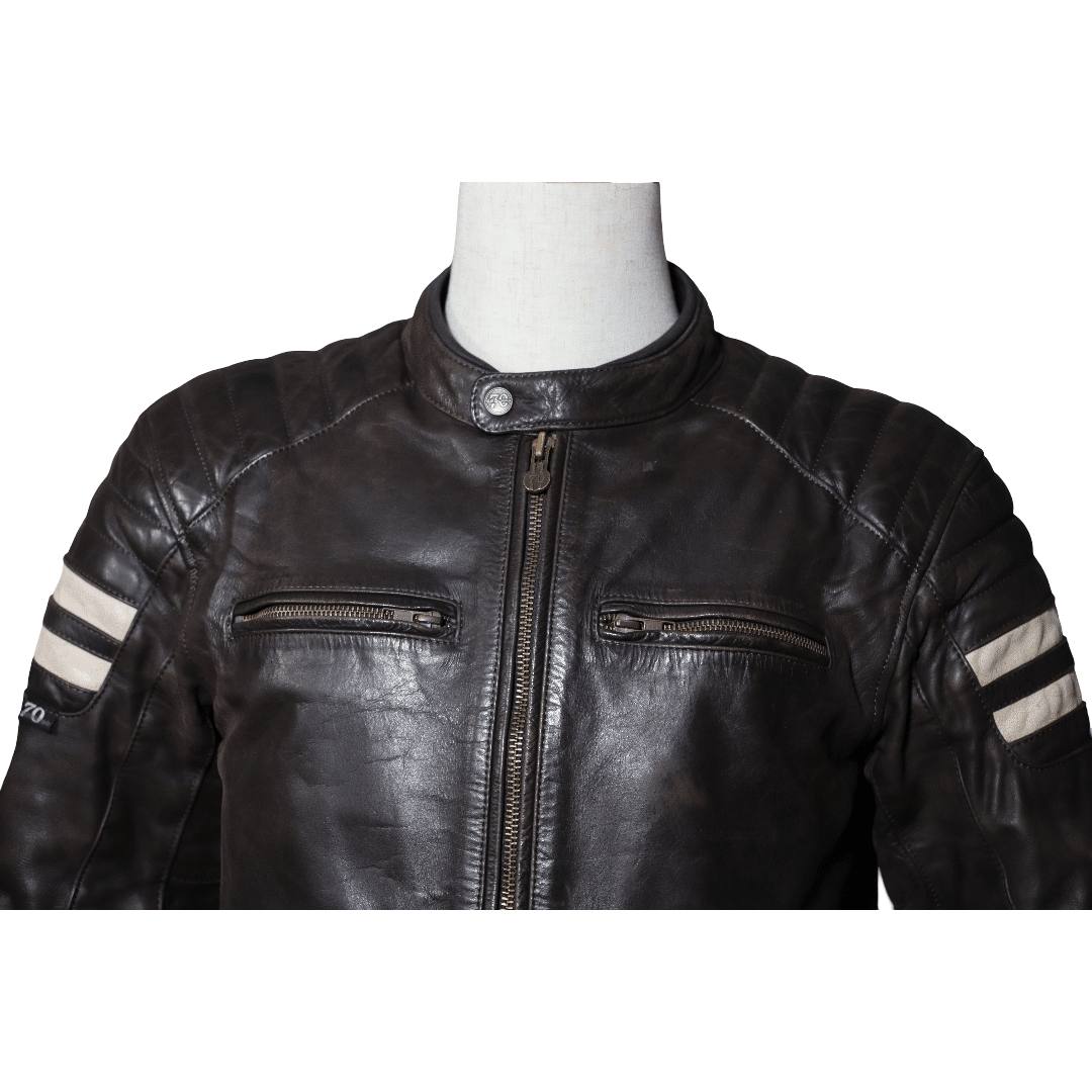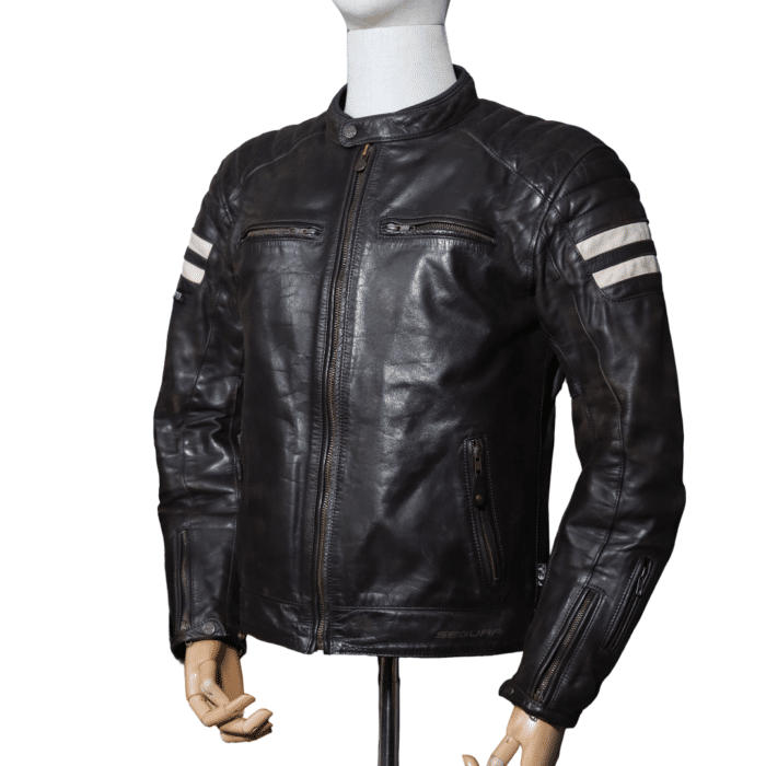 Découvrez notre sélection exclusive de blousons moto en cuir seconde main, avec le SEGURA STRIPE L. Ce blouson a été utilisé pendant deux saisons mais reste en bon état, parfait pour les amateurs de moto à la recherche de qualité à prix réduit. Assurant à la fois style et sécurité, ce blouson moto occasion est conçu en cuir buffalo, offrant une excellente durabilité et un look intemporel.