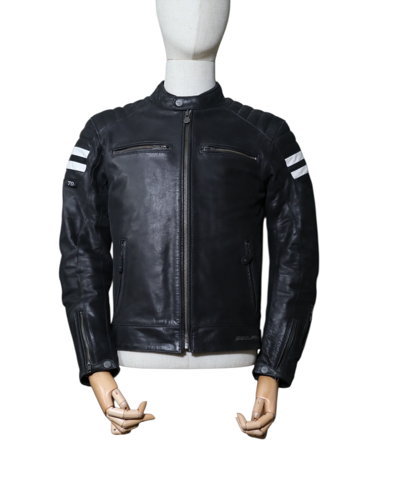 Le SEGURA STRIPE S offre une protection optimale avec des épaules CE et des coudes réglables CE, ainsi qu’une poche pour dorsale CE (non fournie). Sa doublure thermique amovible assure un confort maximal en toutes saisons. Les serrages poignets affinés et les matelassages ajoutés permettent un look encore plus affirmé. Ce blouson moto cuir seconde main est souvent imité, mais jamais égalé, garantissant satisfaction et sécurité pour toutes vos escapades.
